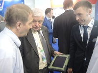 Настоящей «звездой» стенда стал защищенный планшетный компьютер ОНИКС, который, помимо использования в аэрокосмонавтике, предназначен для таких ответственных применений, как: маршрутный компьютер машиниста локомотива, панель оператора мобильного дефектоскопа, информационный терминал сотрудника полиции, требующих от изделия высокой стойкости к ударам, вибрации, осадкам и пониженной температуре окружающей среды.