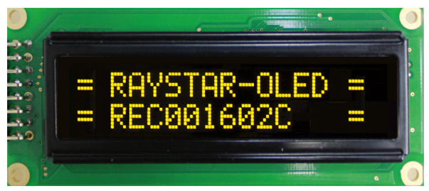 REC001602CYPP5N00000 — OLED-дисплей, C: Character Type; Number of dots: 16 Characters, 2 Lines. Y: Yellow P: With Polarizer; P: Passive Matrix; N: Without touch panel, 0:Normal, N: Duty: 1/16; размер диагонали 2,29"