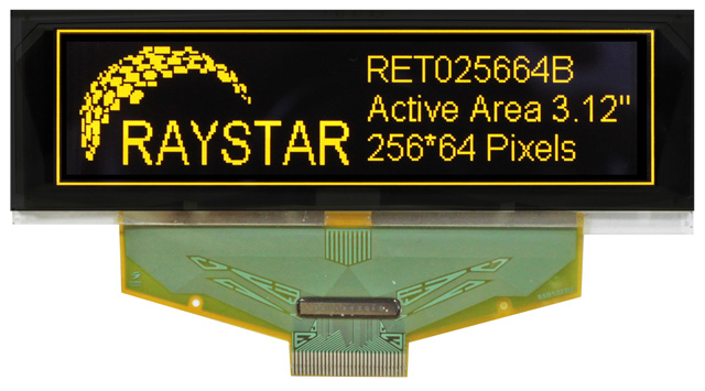 RET025664BYPP3N00000 — OLED-дисплей, Display Type: TAB Type; Number of dots: 256 Dots x 64 Dots; With Polarizer; Passive Matrix; Driver Voltage: 3.0 V; Emitting Color: Yellow; Drive Duty: 1/64 Duty