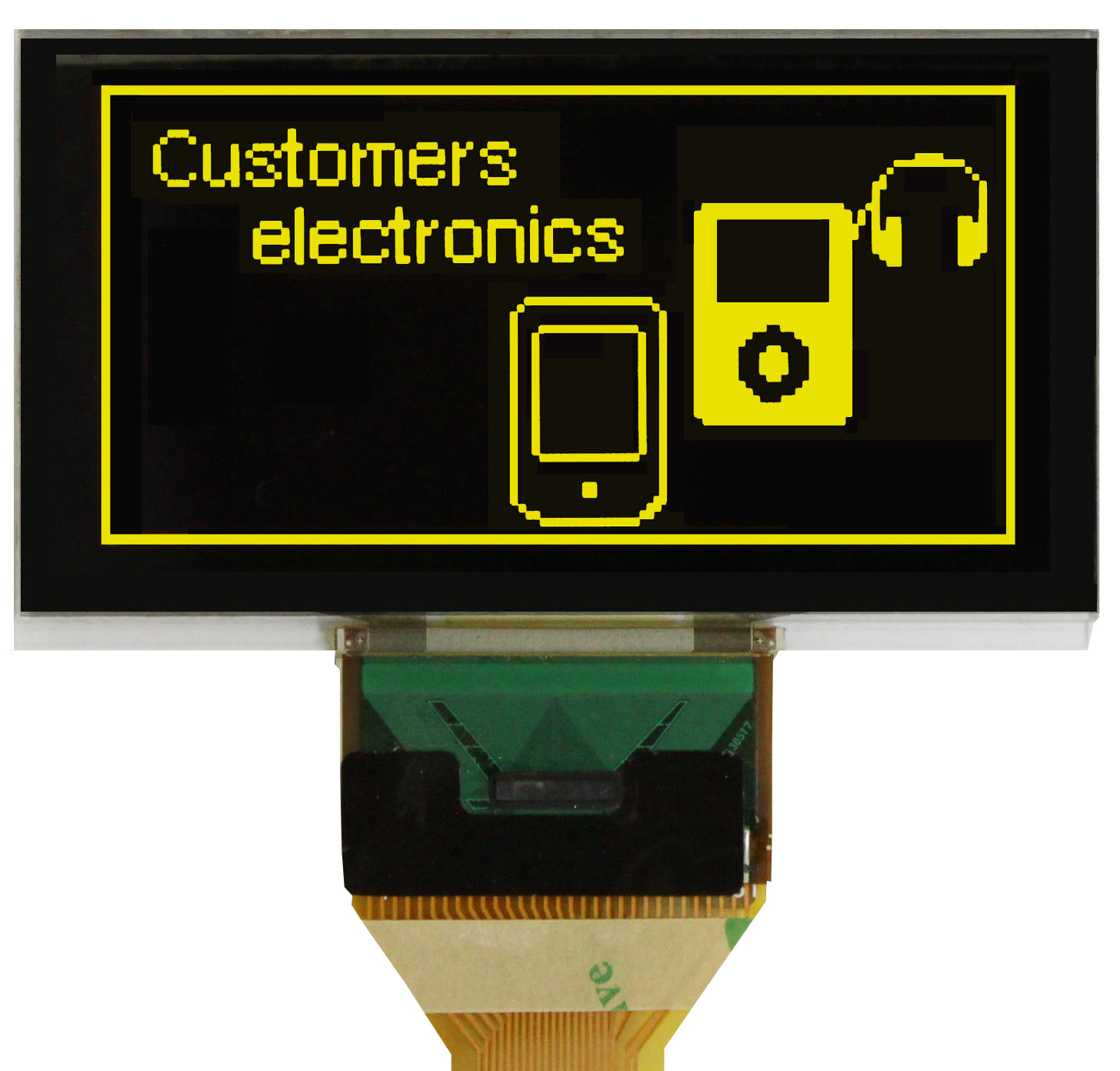 RET012864DYPP3N00000 — OLED-дисплей, Dot Matrix: 128 Dots x 64 Dots; Emitting Color Yellow, With Polarizer, Passive Matrix, Driver Voltage:3.0 V; Duty: 1/64